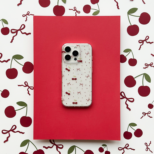 Clear Phone Case - Ditsy Bows & Cherries